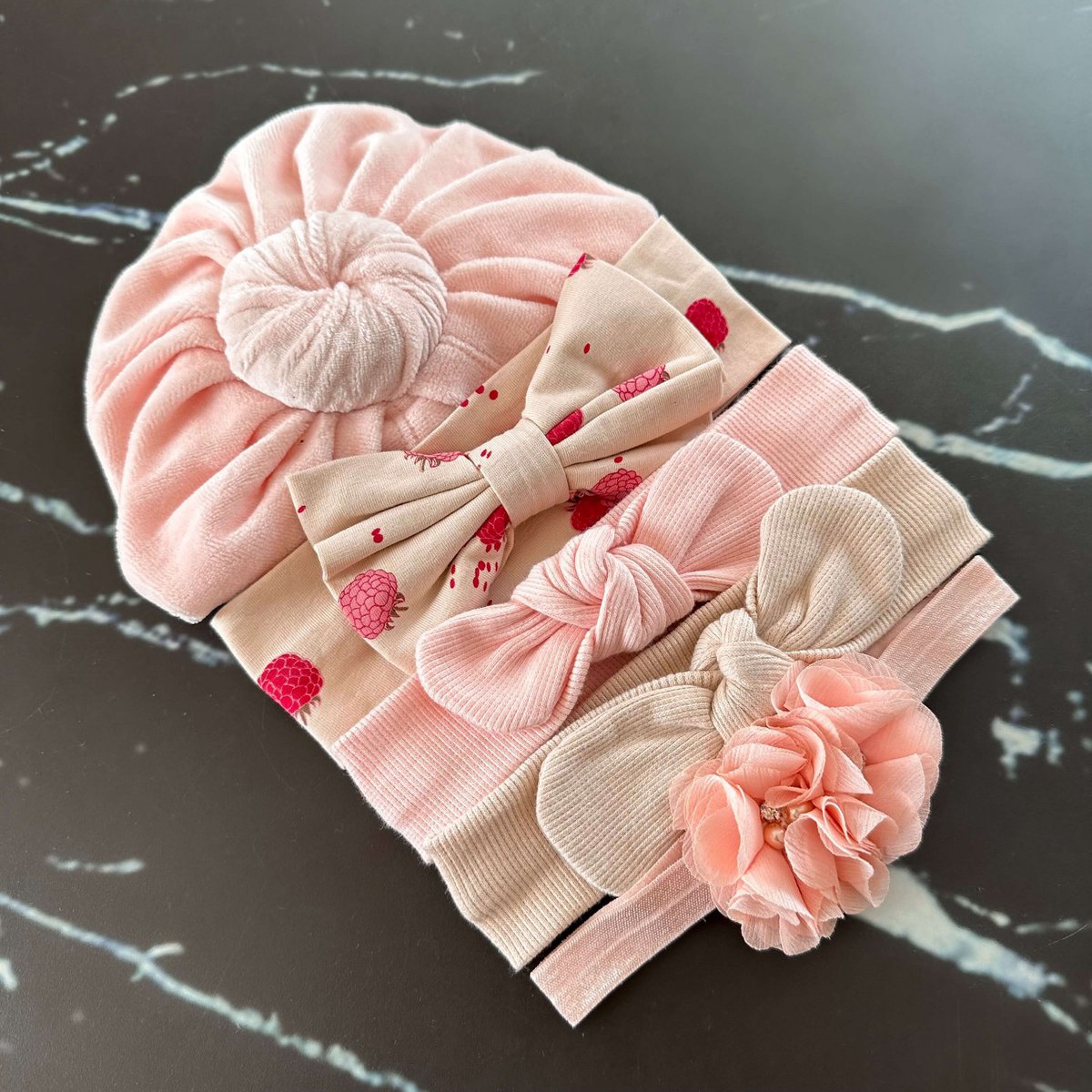 A gift package with all pink hair accessories for your little one. Also very nice to give as a gift.