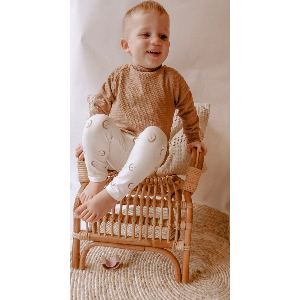 These bottoms are made of a supple jersey that is easy to combine with one of the plain wrap shirts or blouses. Thanks to the soft fabric, the pants are easy to put on and your little one can move freely in them. The leggings are also nice to combine with a newborn hat or headband in the same print.