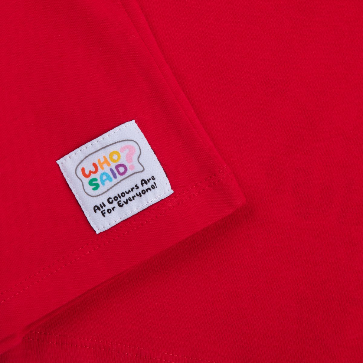 Who said unicorns are for girls? The red unicorn shirt looks great on all children. And it also fits perfectly with our mission. Unicorns have always stood for freeing yourself from old constraints and remaining true to yourself. To dare to swim against the current and to develop freely. And hey, at the end of the day, unicorns are just cute. The front of the red shirt is decorated with a pretty print of a white unicorn with colorful floral ornaments. On the hem on the back you will find our Who said brand label with our heartfelt message: "All Colors Are For Everyone". The T-shirt was manufactured under fair and ecological conditions and consists of 100% certified organic cotton.